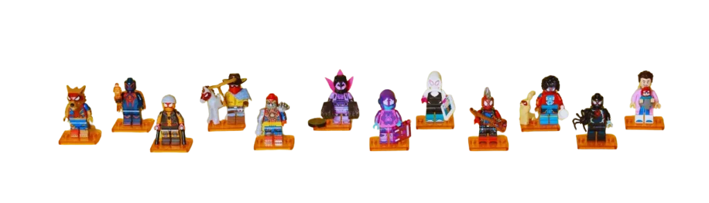 This series includes 12 unique Spider-Verse minifigures, each with exclusive accessories and detailed printing: